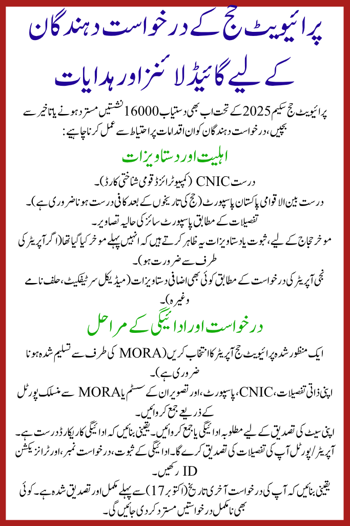 - 16000 Seats Still Available Under Private Hajj Scheme 2025 remain under Pakistan’s Private Hajj Scheme 2025.