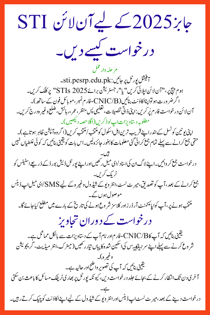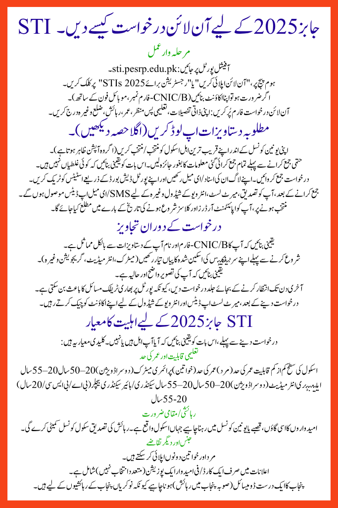 - Read the official advertisement for your district carefully on the portal (sti.pesrp.edu.pk) for any district-specific rules.