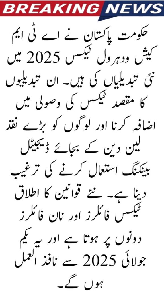 The Government of Pakistan has made new changes to the ATM Cash Withdrawal Tax 2025. These changes are meant to increase tax collection and encourage people to use digital banking instead of large cash transactions. The new rules apply to both tax filers and non-filers, and will come into effect from July 1, 2025.