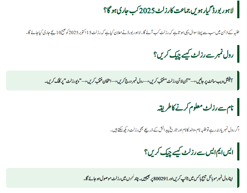 The BISE Lahore Board 11th Class Result 2025 is a turning point for every student stepping into higher education. With multiple methods to check the result — roll number, name, SMS, and gazette — the board ensures that no student is left behind. This result is not only proof of their hard work but also the first step toward achieving bigger dreams. Students who succeed should aim higher, while those with lower marks must not lose hope, as many new opportunities lie ahead.