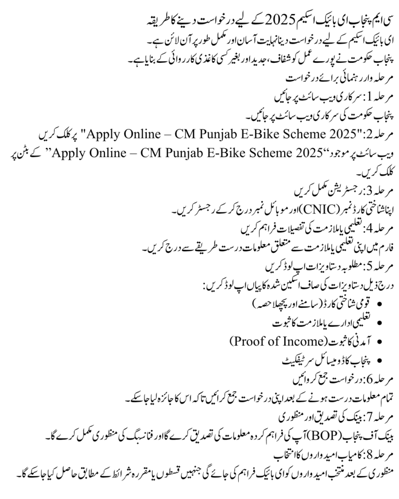 How to Apply for CM Punjab E-Bike Scheme 2025