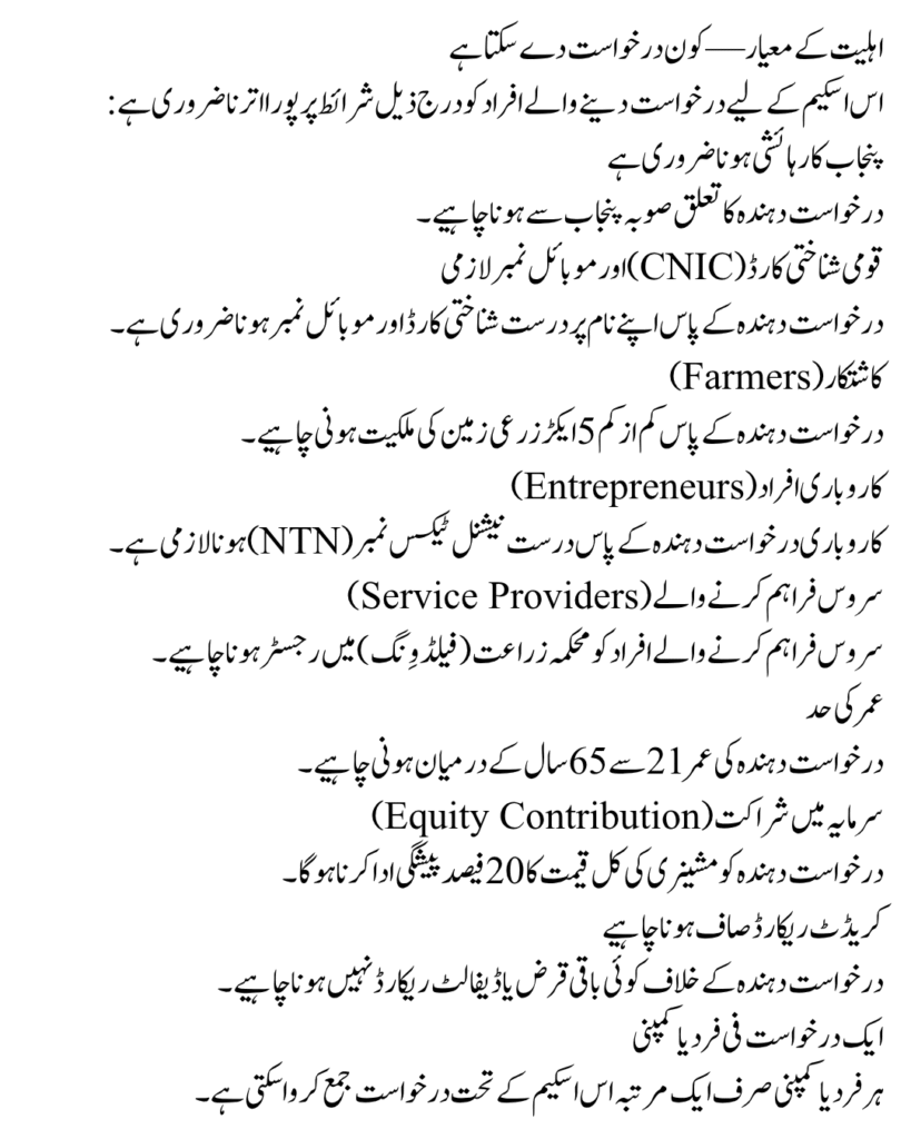 You can apply for up to PKR 30 million to purchase agricultural machinery.