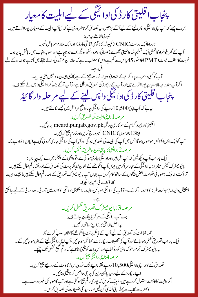 Eligibility Criteria for Withdraw Punjab Minority Card Payment