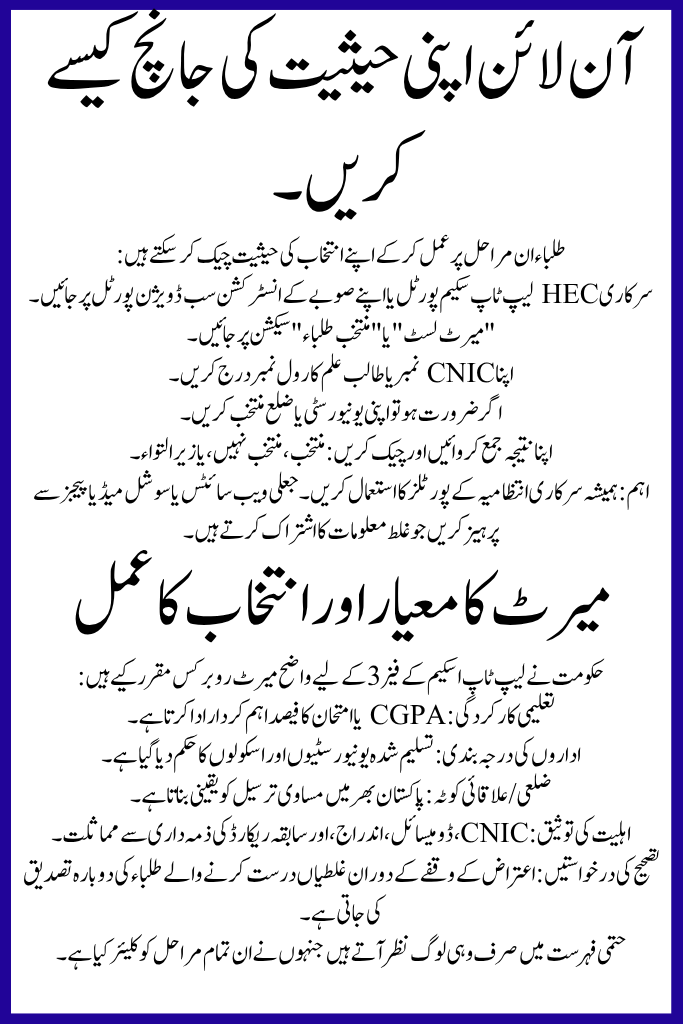 - Students are advised to frequently check the official HEC Laptop Scheme portal for updates.