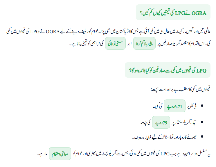 Major Benefits of OGRA LPG Prices Cut