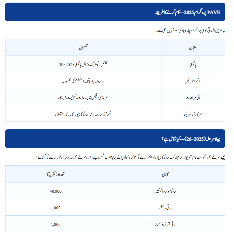 The government has introduced strong regulatory, fiscal, and infrastructure-based policies to make Pakistan Accelerated Vehicle Electrification 2025 successful:
