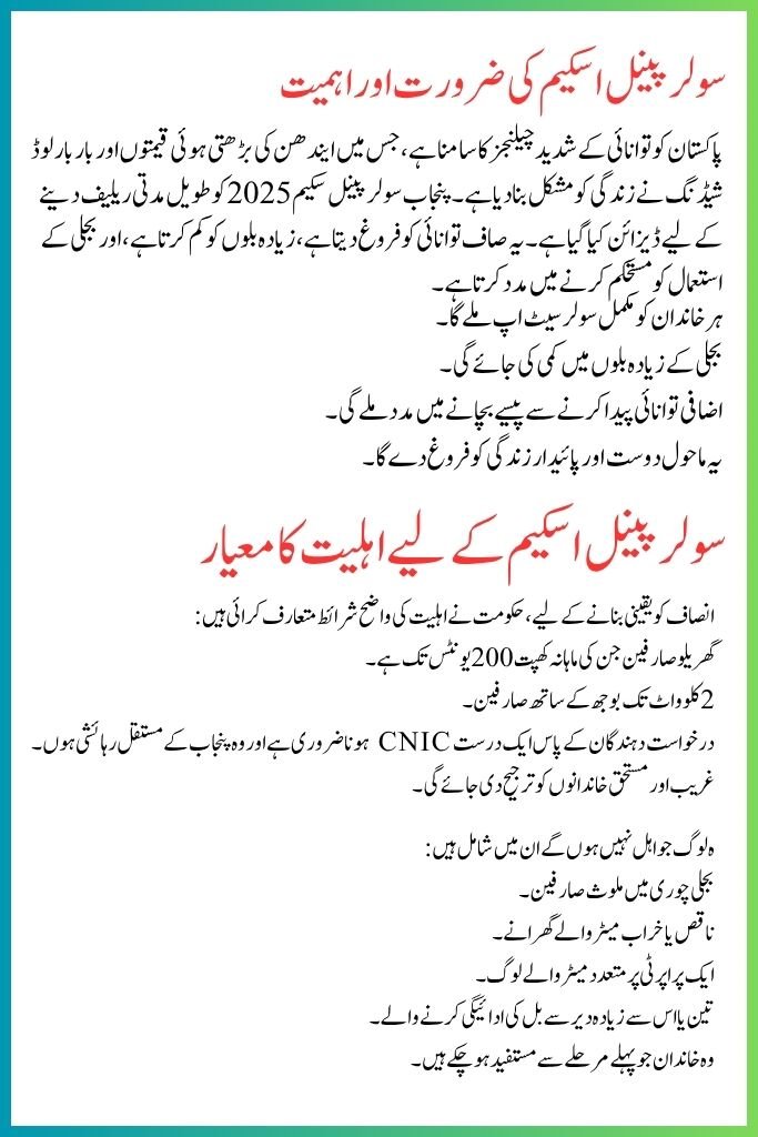 The Punjab Solar Panel Scheme 2025 Phase 2 is a remarkable initiative that supports poor and middle-income families in reducing power costs and promoting sustainable living. This project not only provides relief from high electricity bills but also encourages a shift toward clean and renewable energy. Eligible families should prepare their documents and apply as soon as registration opens to take full advantage of this golden opportunity.